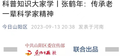 山阳区充分发挥新媒体传播面广、受众量大、时效性高的优势,在“今日山阳区”微信公众号上,开设《科普知识大家学》栏目,连续推送老一辈科学家精神等内容,让大家了解科技知识,使科技知识走向“云”端,走进群众心坎里。