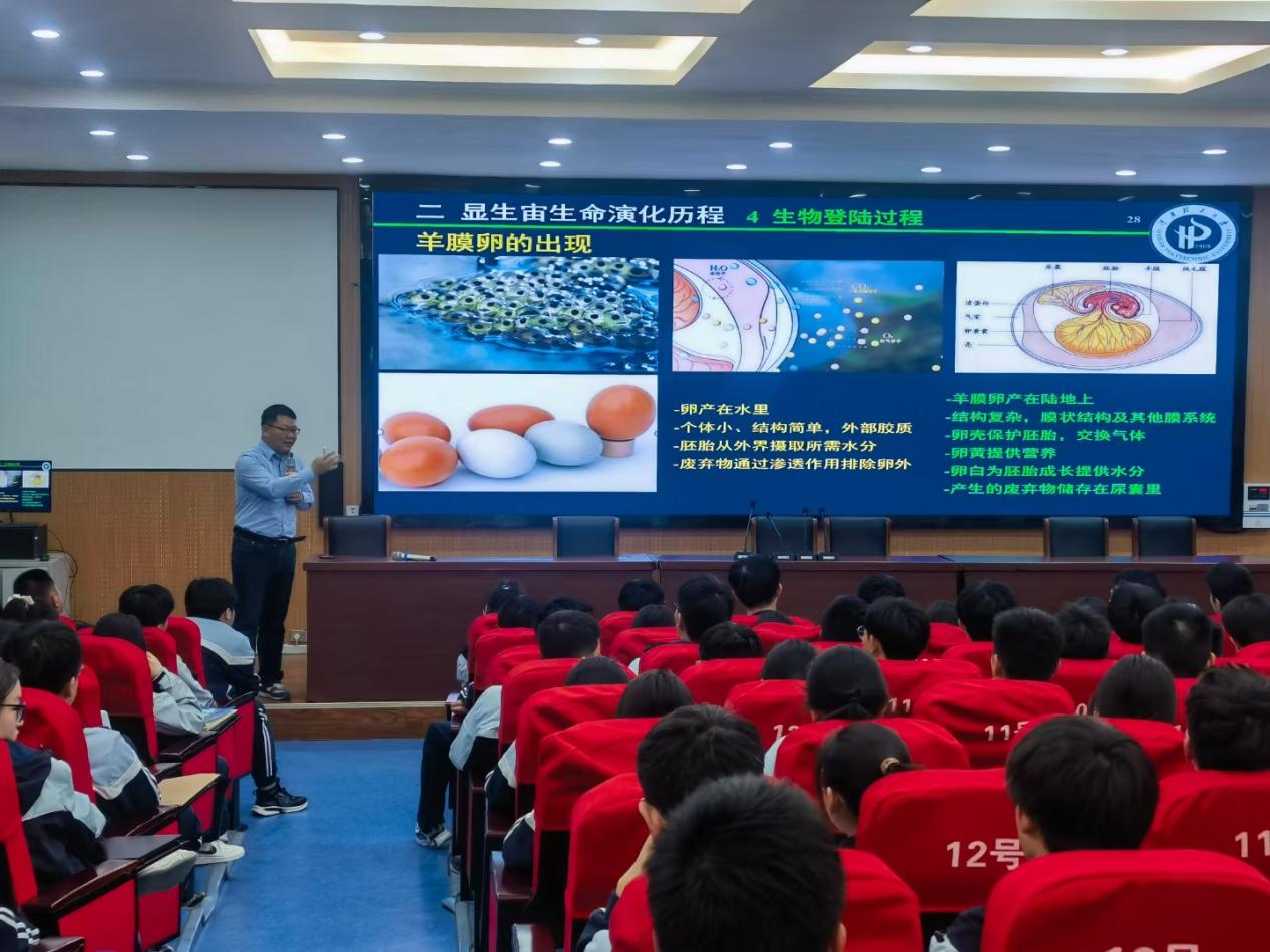 郑德顺以《生命起源与演化》为题,重点介绍了生命起源与早期演化,讲解了显生宙生命演化历程,带领师生畅想亿年前的生命起源的奥秘。