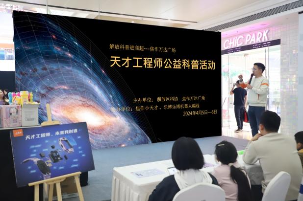 4月5至6日,解放区科协联合市级科普教育基地乐博机器人和焦作小天才举办天才工程师公益科普活动在焦作市万达广场启动。