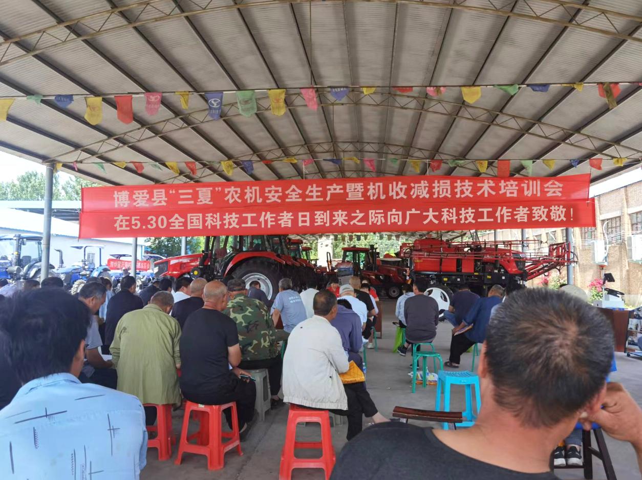5月17日上午,在“全国科技工作者日”到来之际,博爱县忠盛农机专业合作社里人头孱动,由博爱县科协主办、博爱县维多维康种植专业协会和博爱县忠盛农机专业合作社承办的2024年博爱县“小麦机收减损”技术培训在这里隆重举行。全县各乡镇(街道)农办主任、农机销售企业负责人、部分农机户种植户和农机驾驶人员约100多人参加了会议。