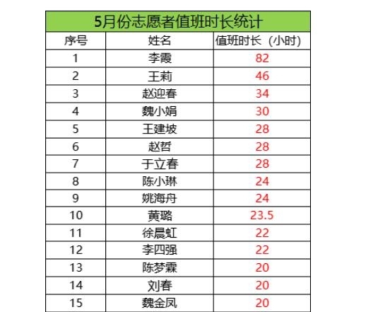 据5月份河南省志愿者值班时长统计显示,焦作市中站区首席科普专家李霞参与值班时长位列第一。