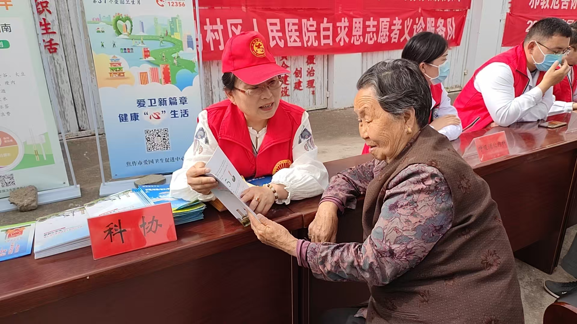 马村区人民医院、九里山社区卫生服务中心的医护人员组成志愿服务队,免费为居民提供血压血糖检测、慢性病咨询、中医诊疗等义诊服务。