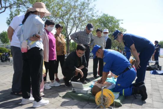 活动现场,各单位通过悬挂宣传标语、设立防灾减灾宣传展板、发放各类宣传资料、向群众面对面讲解等方式,广泛宣传防灾减灾常识,讲解各类灾害事故应急防范知识;博爱县消防大队、林业中心分别预置消防车和消防摩托车,展示防汛抢险物资、森林防火物资,并积极向群众进行专业讲解和实操演示;蓝天救援队先后展示了测流无人机、抛投器等设备,体现了博爱县抢险救援物资保障能力;工作人员进行应急救护现场实操,重点讲解心肺复苏术、海姆立克急救法等应急处理方式,让急救知识深入人心,为生命护航。