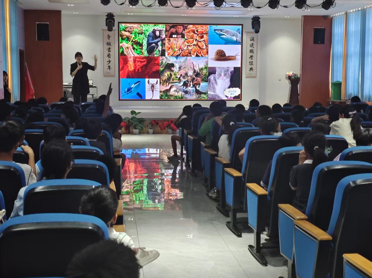 本次活动特邀河南理工大学资源环境学院副教授、硕士生导师代明月老师主讲。课堂上,代老师凭借生动的图片、有趣的视频,以通俗易懂的语言,深入浅出地阐述脊椎动物的登陆历程。她巧妙地将复杂科学知识转化为学生易于理解的内容,让抽象知识变得鲜活有趣。