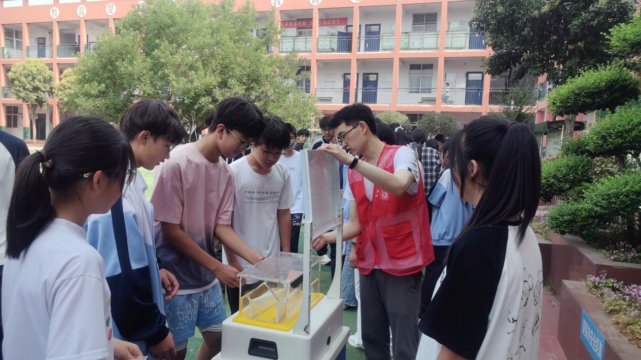 实验互动结束后,科普大篷车上20余件涵盖力学、电磁学等领域的互动展品吸引了同学们的目光。在科普志愿者的耐心指导下,同学们亲手操作这些新奇的科学装置,在动手体验过程中,感受物理规律的奇妙,让书本上的知识“活”了起来。校园里满是同学们求知若渴的身影与探索发现的欢声笑语。