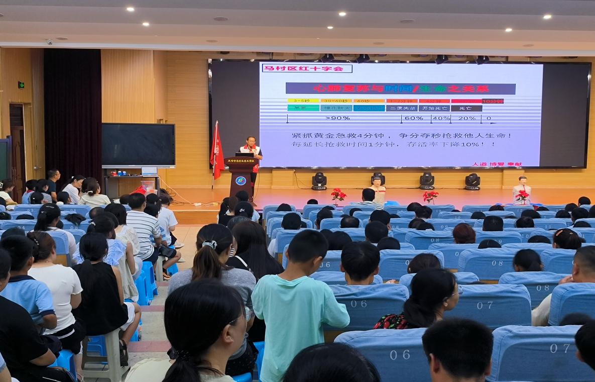 马村区科协邀请焦作市科普专家服务团成员崔新富及团队,为学校300 余名师生、家长带来了一堂生动实用的生命救护课,为即将到来的假期安全保驾护航。培训现场,救护专家结合真实案例,围绕学生假期溺水防范、溺水后生命救护、心肺复苏、海姆立克急救法等内容展开详细讲解。