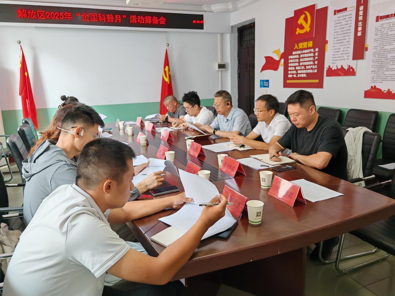 7月17日,解放区科协召开全国科普月活动筹备工作会议。解放区科协主席杨瑞林、副主席乔勇及全区10个街道(园区)科协负责人出席会议。