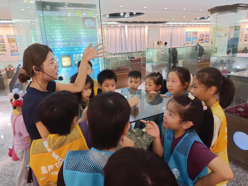 8月15日,夏令营开启研学实践,营员们先后前往云台山世界地质公园博物馆和河南理工大学地球科学馆,在讲解员的带领下,通过地质标本、实景模型和互动展示,直观了解云台山独特地质地貌的形成过程,近距离观察各类矿物岩石标本、古生物化石,聆听地球科学发展历程中的精彩故事,感受大自然的鬼斧神工与地球演化的漫长历史,进一步拓宽地质科学视野。
