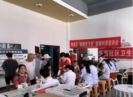 8月26日,解放区科协联合解放区卫健委走进焦西街道电建西院小区开展“健康进万家”公益服务行动。丰富多样的健康服务吸引了众多居民踊跃参与,科普互动环节为居民们送上了一份实用且贴心的 “健康大礼包”。