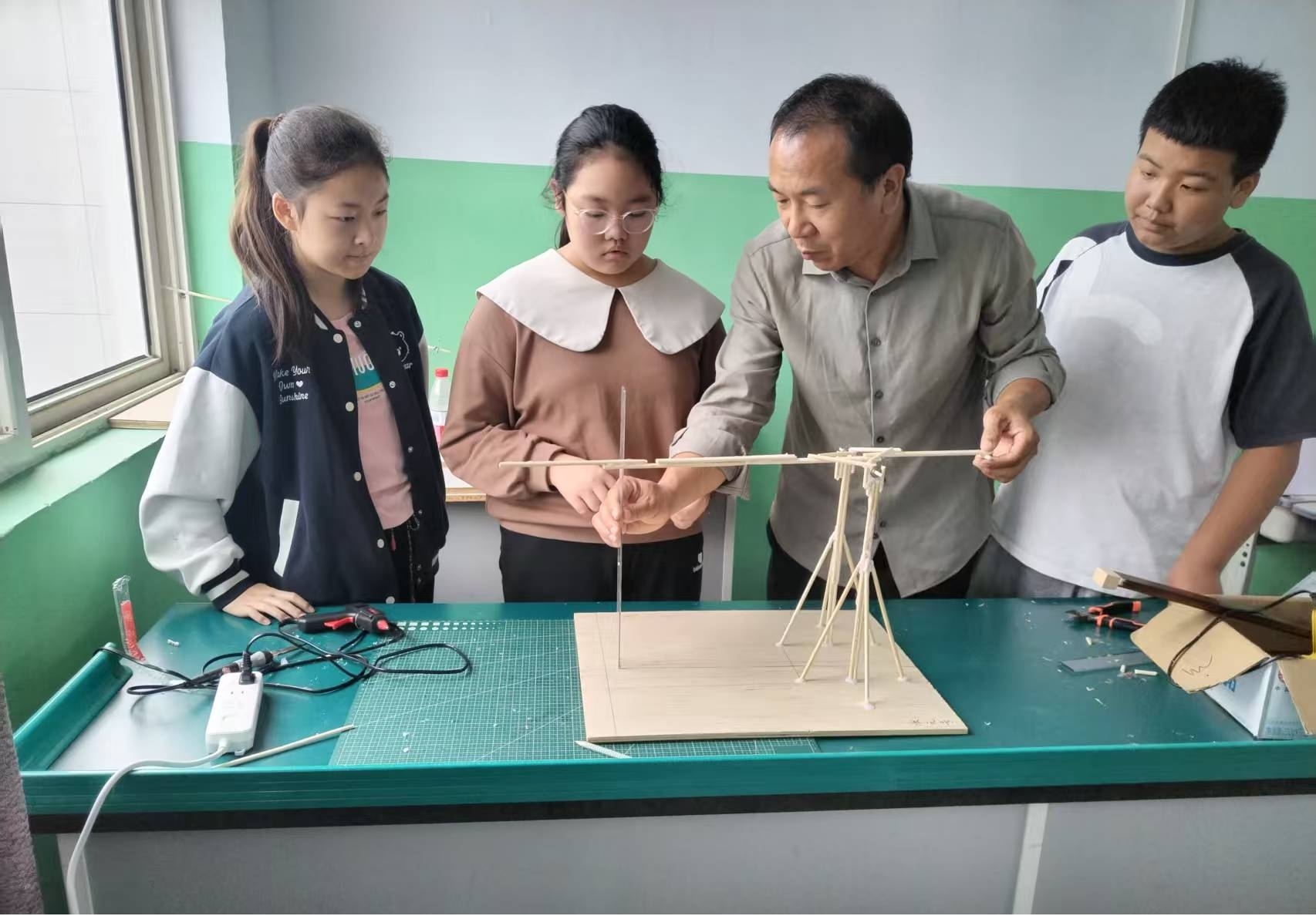 活动现场,崔联军打破传统的理论讲解,而是以“动手实践”为核心,精心设计了鸡蛋撞地球、纸桥承重、原电池小车、水火箭、抛石机攻城、纸弓箭打靶、铁丝陀螺七大互动项目,让孩子们在操作中探索科学原理。在“鸡蛋撞地球” 环节,孩子们脑洞大开,用泡沫、纸箱、气球等材料为鸡蛋制作“保护装置”,随后从高处抛下,观察鸡蛋是否完好。当看到自己设计的装置成功保护鸡蛋时,五年级学生李浩然激动地说:“原来通过合理的结构设计,能减少冲击力,这就是科学的力量!”