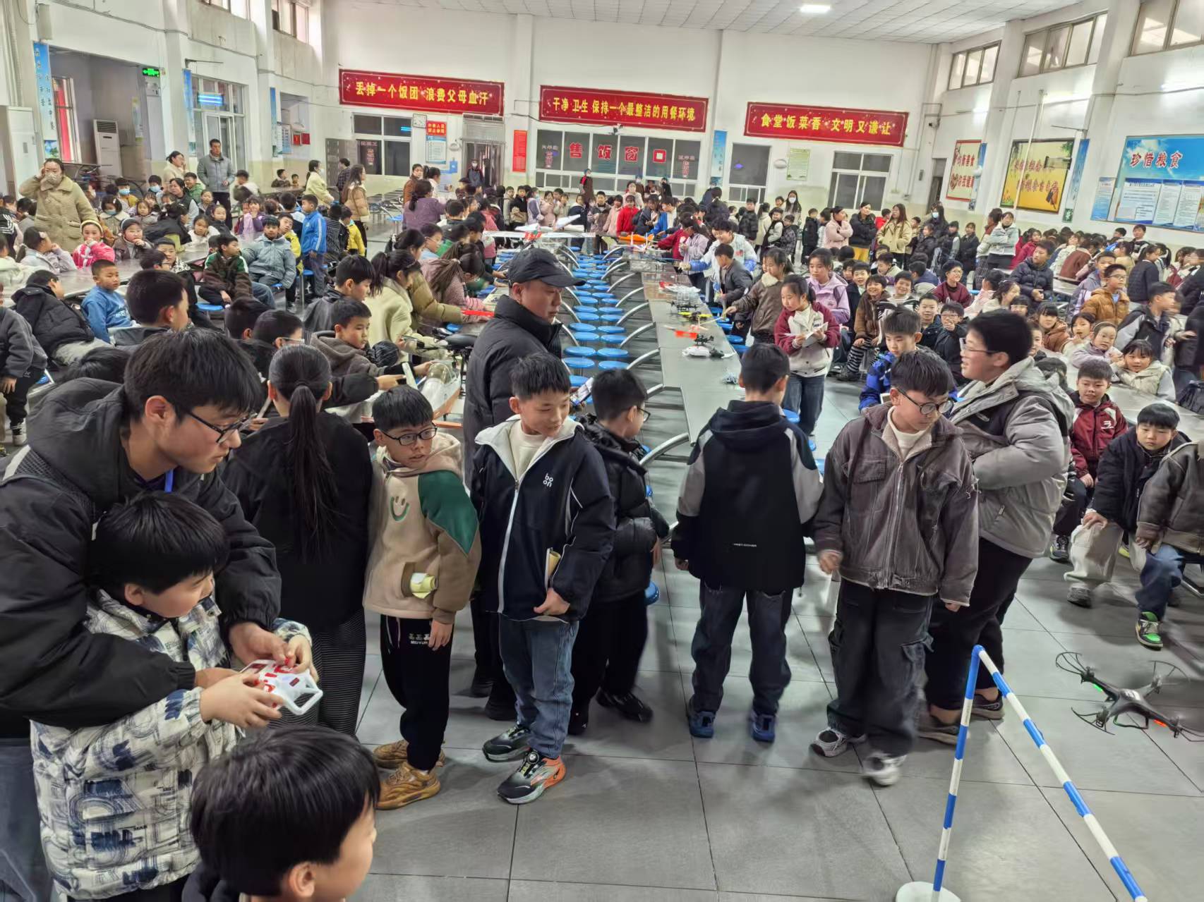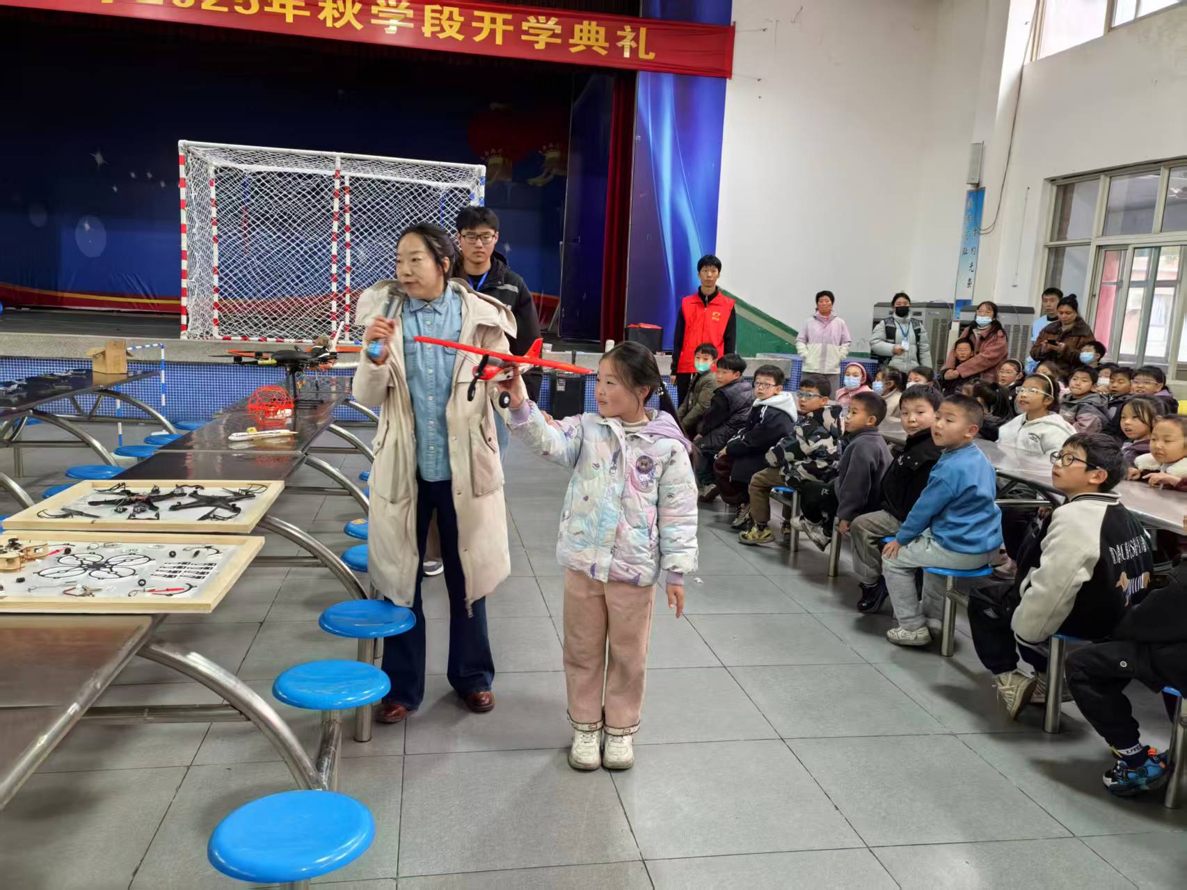 当无人机在空中翻转时学生们惊叫声震耳欲聋,欢呼不止。老师现场邀请几名学生上台体验无人机篮球时,学生们全体举手,都想跃跃欲试去体验一把,看到进球时,学生们呐喊声此起彼伏,仿佛要冲破云霄,学生们脸上洋溢着狂热,整个现场都被这热烈的气氛点燃,宛如一片欢乐的海洋。