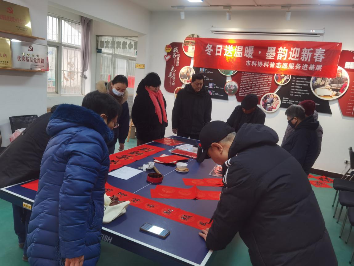 为深入贯彻落实新时代文明实践志愿服务工作要求,传承弘扬中华优秀传统文化,切实把党和政府的温暖与关怀送到基层群众心坎上,2月10日,市科协联合市老科协走进帮扶共建的民主北路社区,开展“冬日送温暖·墨韵迎新春”科普志愿服务进基层活动,全力为社区居民打造一场有温度、有内涵、有文化味的新春志愿服务盛宴。