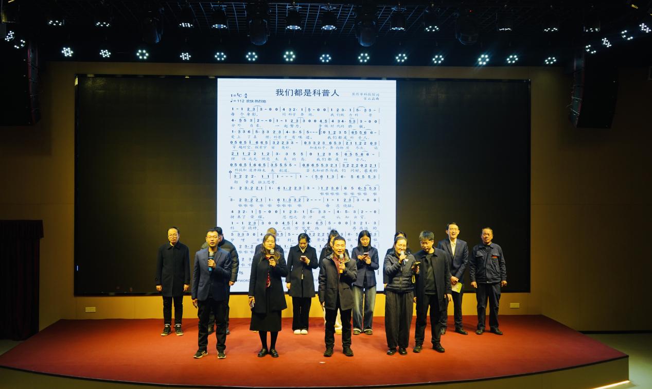 整场活动节目形式多样、内容精彩纷呈,充分展现了科技馆职工团结向上的精神风貌。在联欢尾声,全体人员共同唱响市科技馆馆歌《我们都是科普人》,悠扬而坚定的歌声回荡在整个会场。