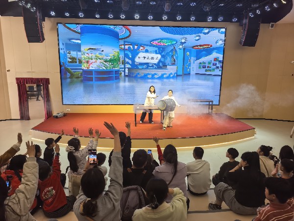科普秀剧场内的实验秀、科普剧轮番上演,观众在“液氮大爆炸”“空气炮”等实验秀中解密科学原理,在《螺丝钉历险记》《钱学森》等科普剧中致敬科学家精神。更有“马不停蹄”科技大闯关吸引300名孩子参与答题集章挑战;焦创工坊内150个家庭亲手制作舞龙纸杯、金箔画、皮影戏,在指尖传承匠心文化。