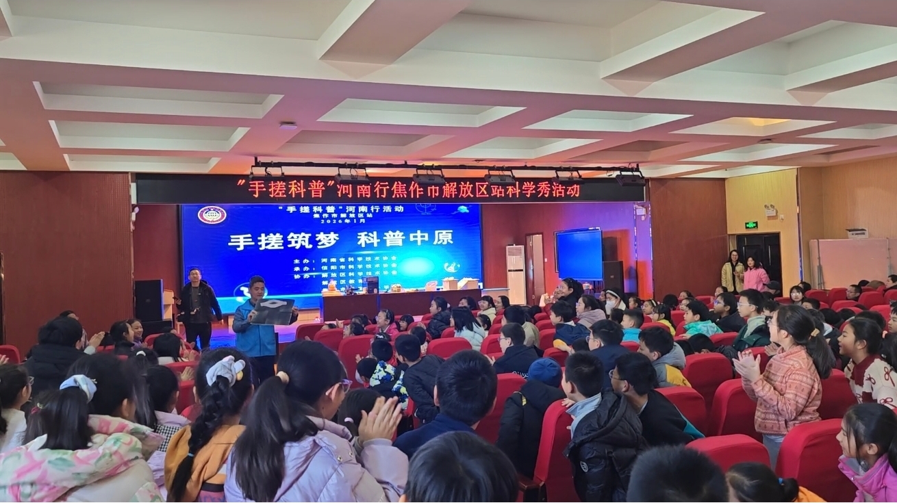 为深入贯彻落实《科普法》和《全民科学素质行动规划纲要》要求,推动优质科普资源下沉基层,激发青少年科学兴趣与创新精神,提升科学教师专业素养,1月15日,由河南省科学技术协会主办、信阳市科学技术协会承办、焦作市科学技术协会协办的“手搓科普”河南行焦作站活动顺利开展。活动分别在焦作市科技馆报告厅和学生路小学举行,为近500名师生带来了一场别开生面的科学盛宴。