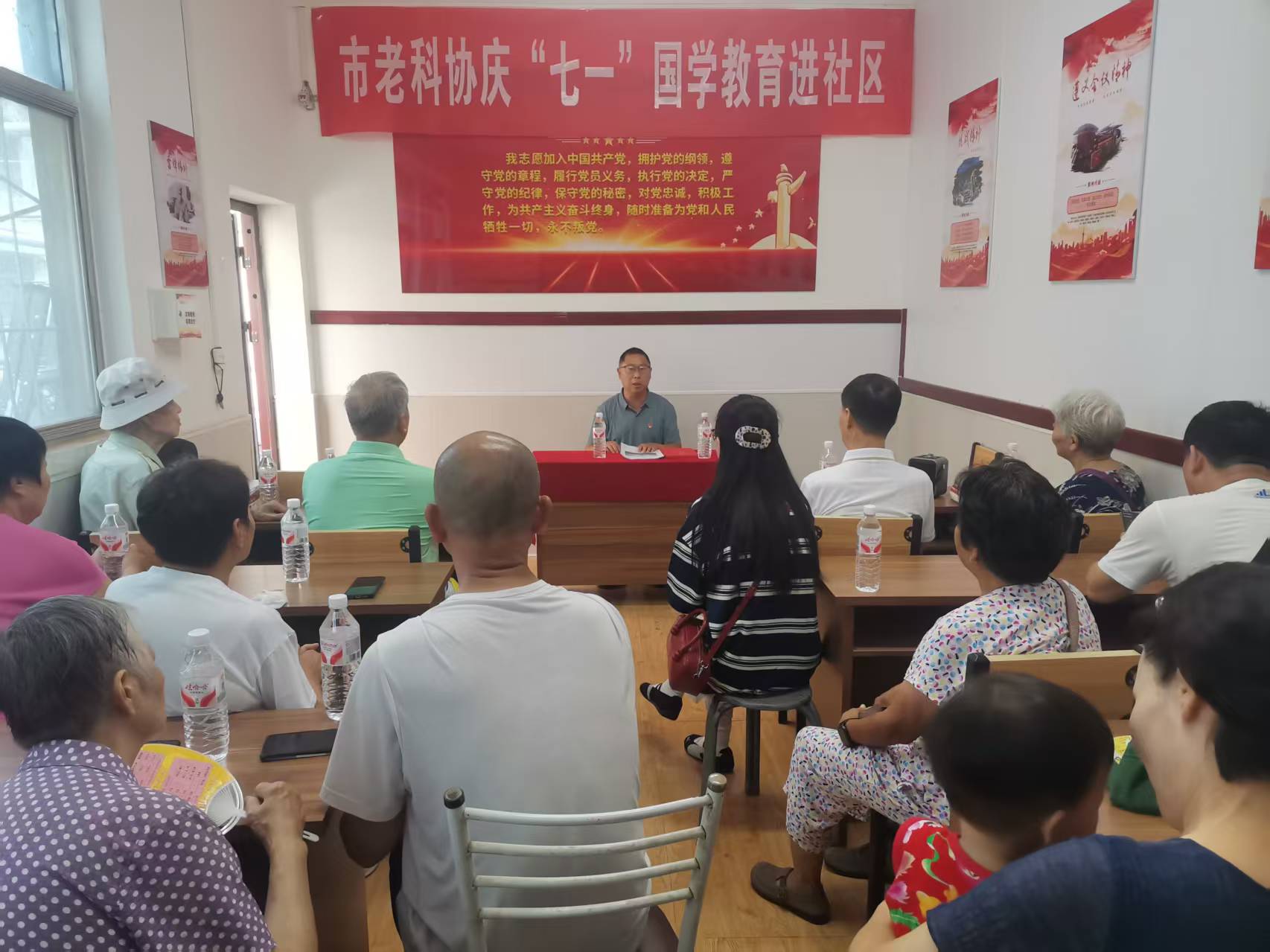 7月1日,市老科协“庆七一国学教育进社区”首场活动在山阳区东方红街道文化巷社区省运小区举行。