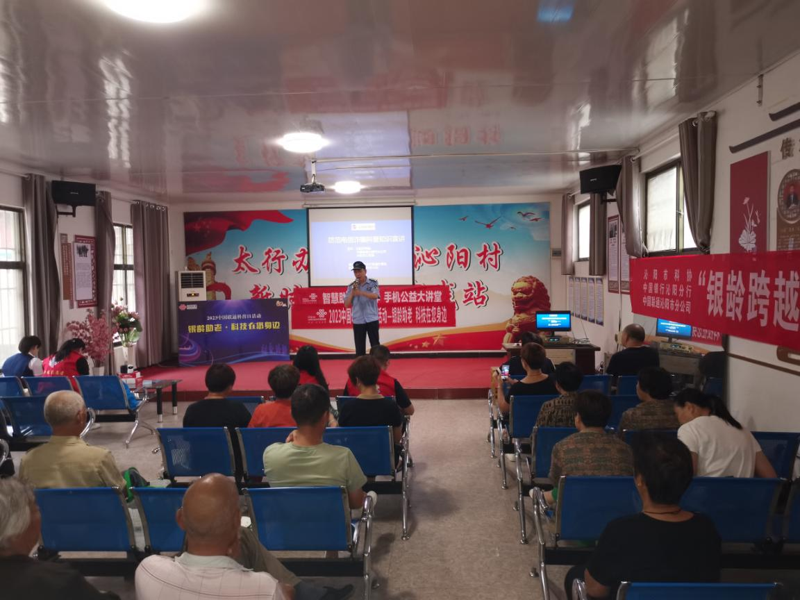 9月19日,在全国科普日活动期间,沁阳市科协联合市公安局、沁阳市联通公司走进太行怀庆街道东沁阳村开展“银龄跨越数字鸿沟”--防范电信诈骗科普知识讲座活动。50余名老年人参与活动。