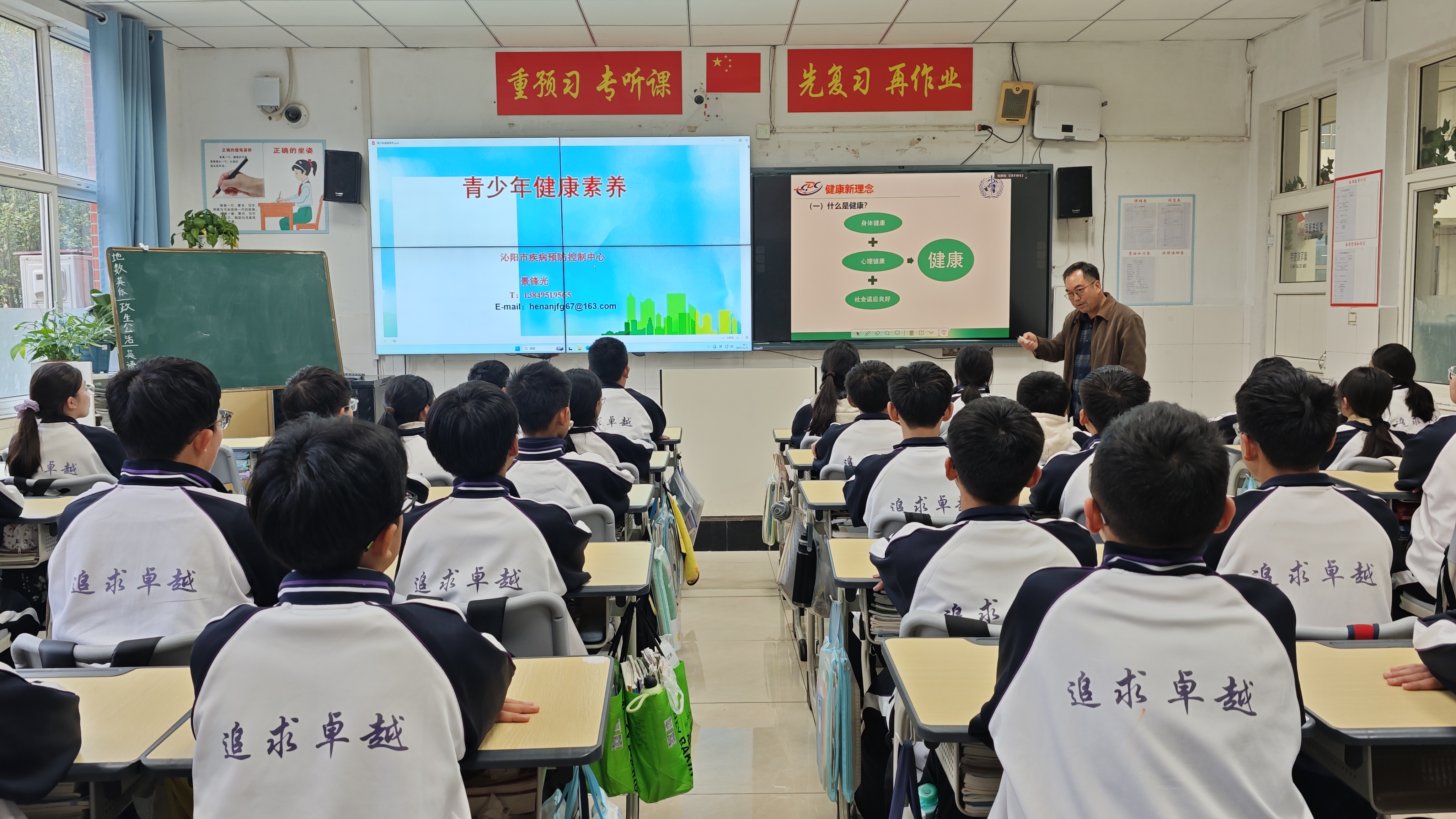 为科学有效预防和控制学生常见疾病,全面提升青少年健康素养,10月30日,沁阳市首席科普专家、沁阳市疾病预防控制中心主任医师景锋光走进永威学校,为同学们带来一堂主题为《青少年健康素养》的专题讲座,用专业知识为青少年健康成长保驾护航。