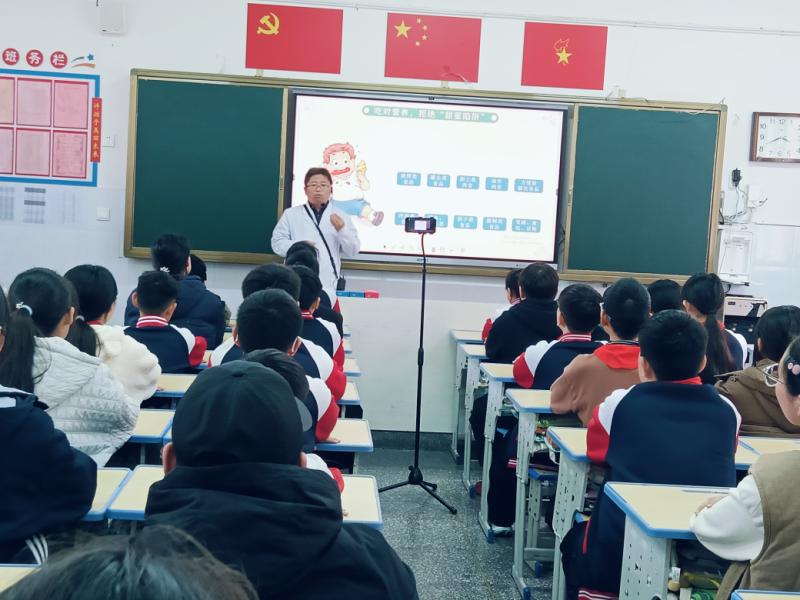活动中,梁主任结合其深厚的专业医学知识和丰富的临床经验,紧扣“儿童肥胖的健康危害”与“科学远离肥胖的方法”两大核心,聚焦“吃、动、睡”三大解题思路,通过生动的画面、通俗的语言,详细拆解儿童肥胖防控要点,从合理搭配三餐、少吃零食和含糖饮料,到坚持每日运动、保证充足睡眠,让同学们直观了解健康生活的重要性。整个活动中,同学们坐姿端正、眼神专注,全程凝神倾听;互动环节更是踊跃举手,就日常饮食和运动中的疑问向专家请教,现场氛围热烈活跃。